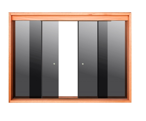 JANELA COM BATENTE DE MADEIRA E VIDRO TEMPERADO 6 MM DE CORRER.